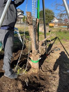 本日、伐根のご依頼をいただきました。抜けども抜けども続く長い根に生命の力強さを感じます。
