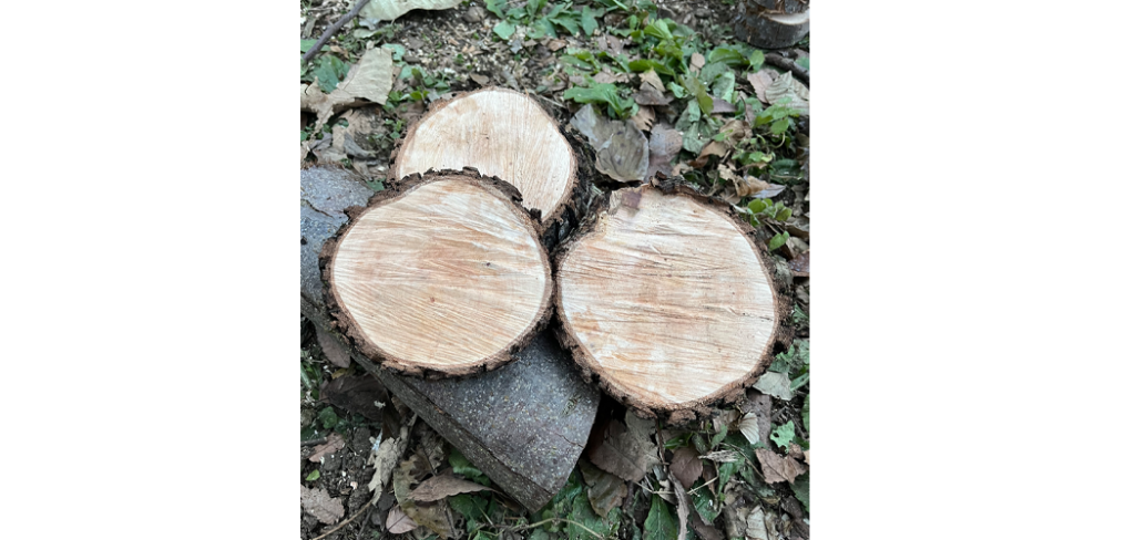 保育園の先生から幹の輪切りを何個か作れないかとご相談を受けたので、手持ちのチェーンソーで作っていくつかお渡ししました。あまりキレイな出来栄えではありませんが、子供の作品用の台やクリスマス飾りに活用できると喜んでいただけました。また、園で回収した朽ち木はかなり古くなっていたので知り合いの梨農家さんから切りたての幹をいただき作成しました。ご協力ありがとうございます。